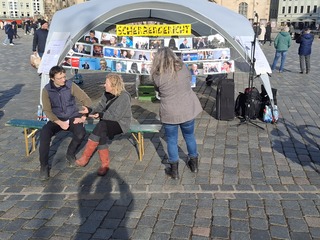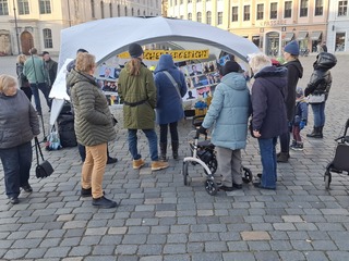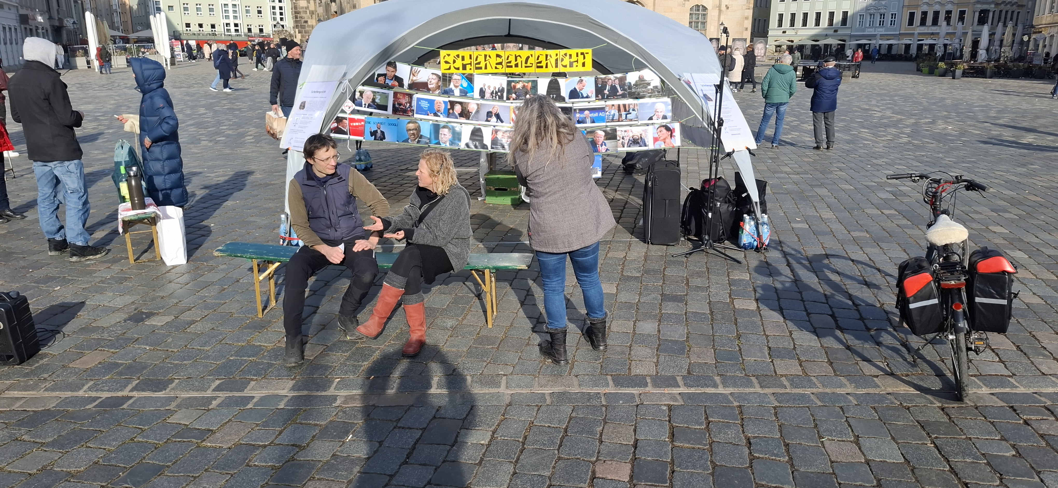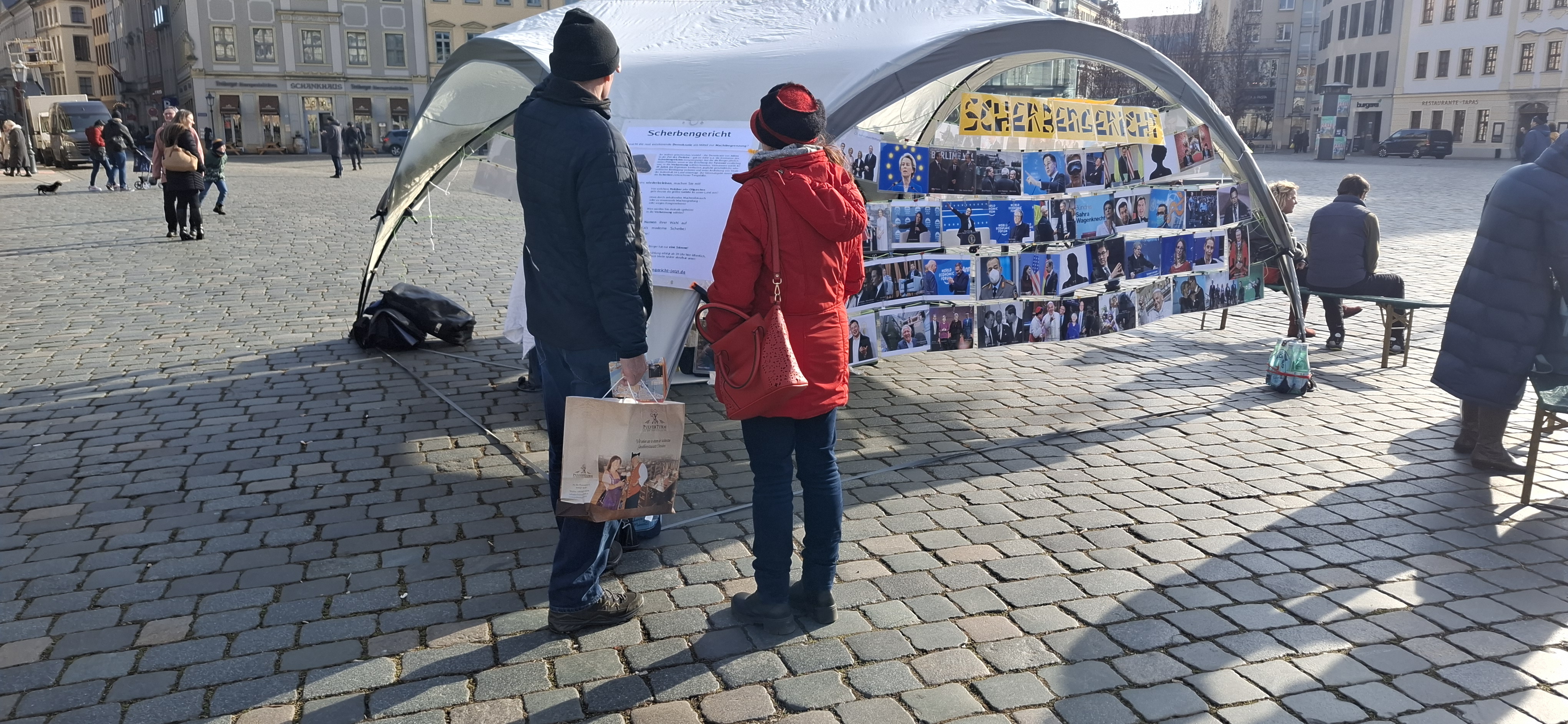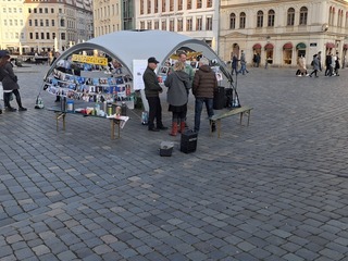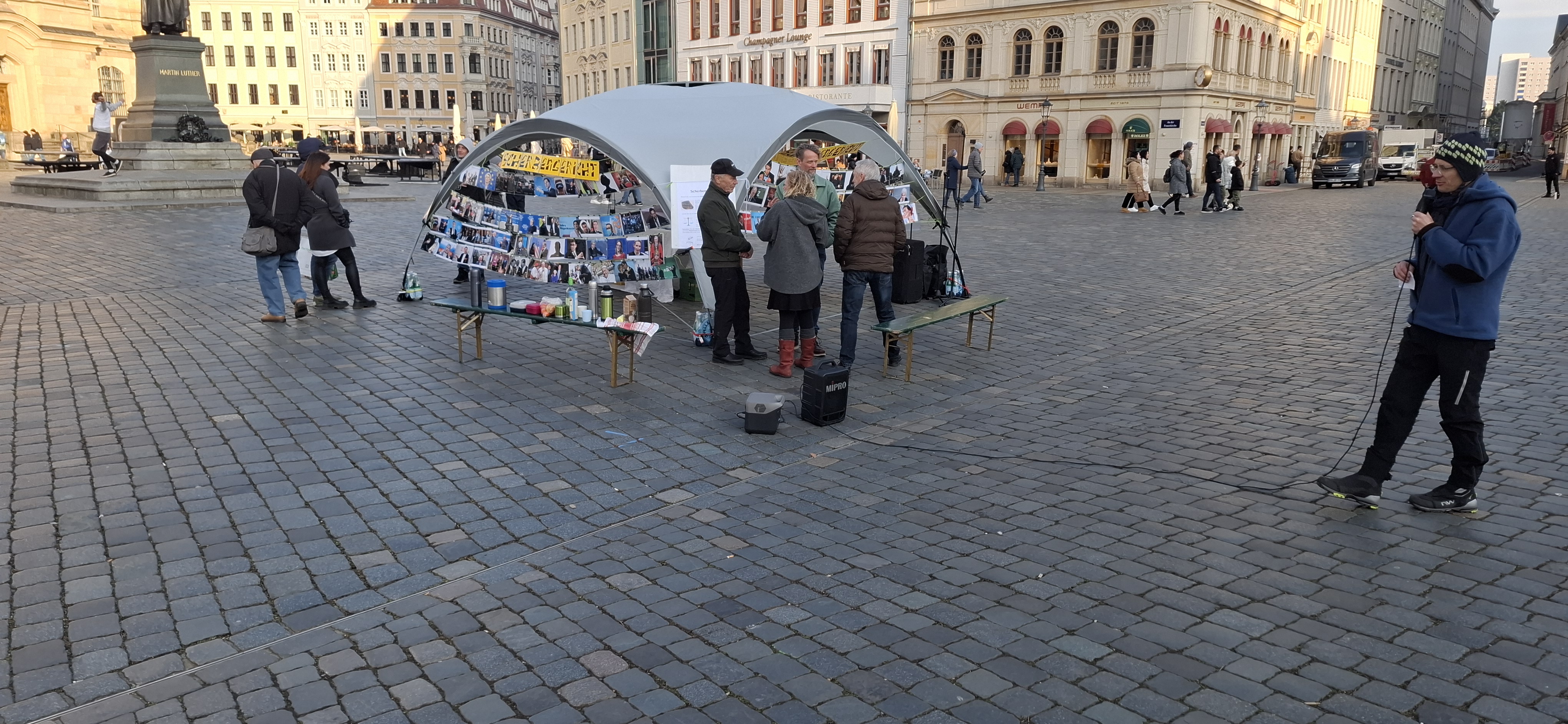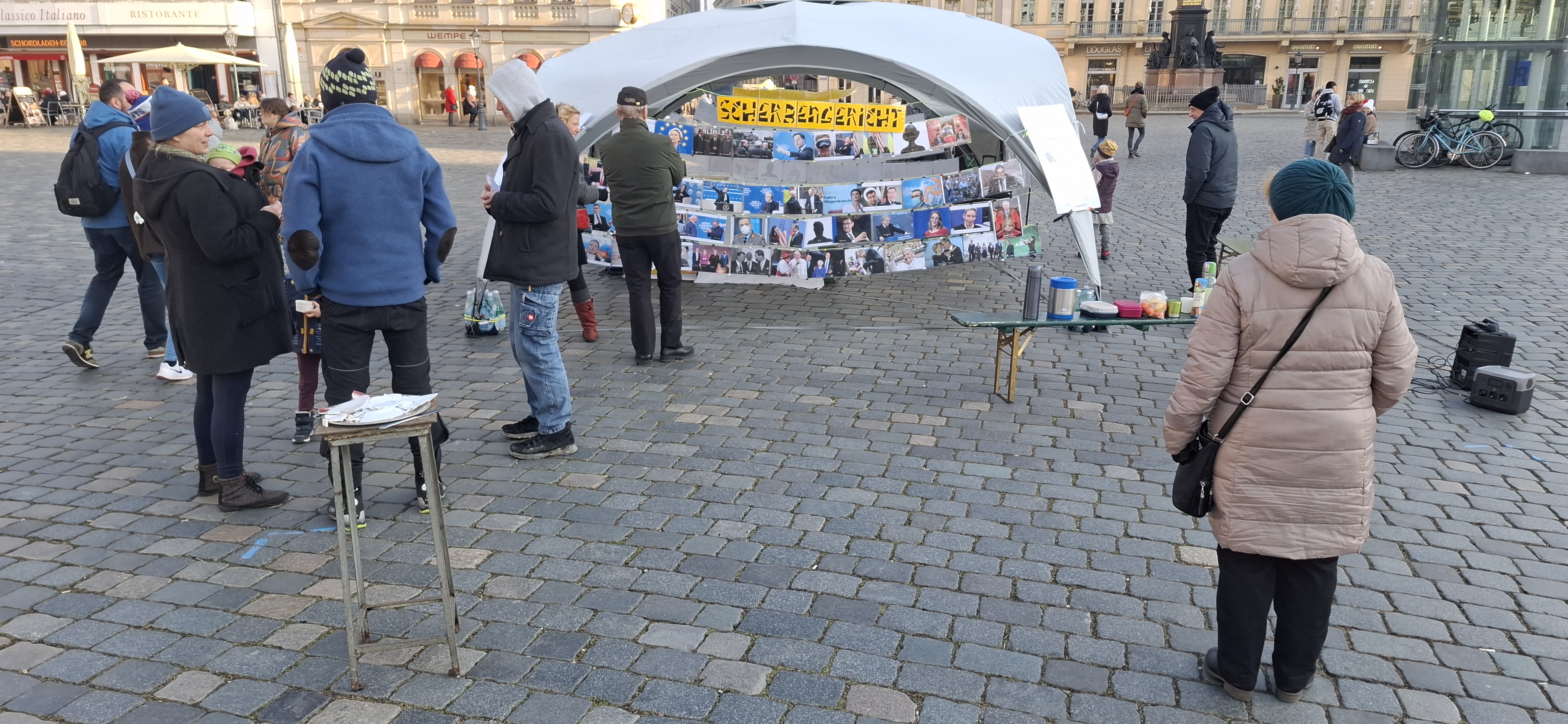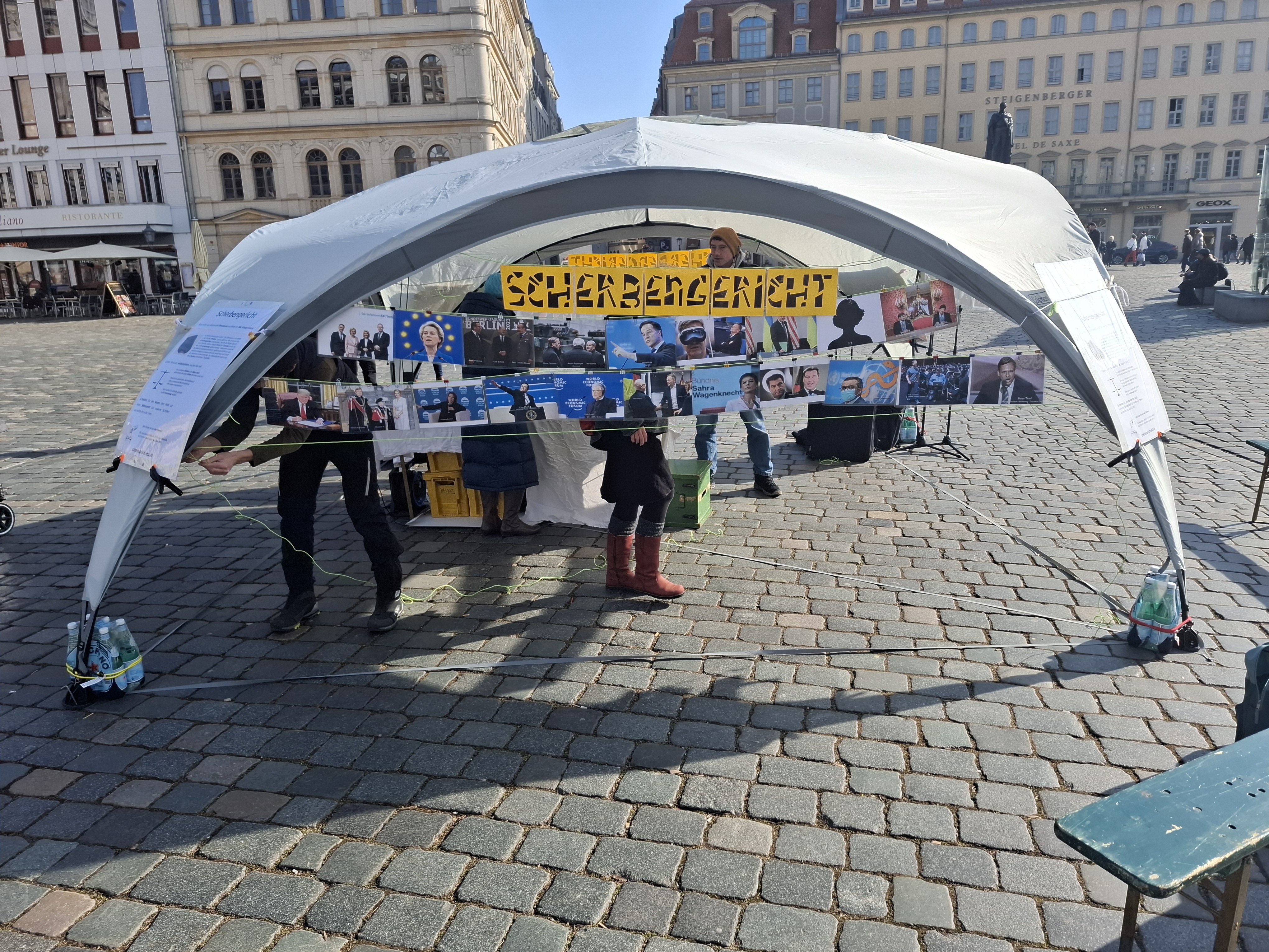 Das Scherbengericht besucht heute die Feier zum 11. Geburtstag der Friedensmahnwache Dresden auf dem Gomondai-Platz