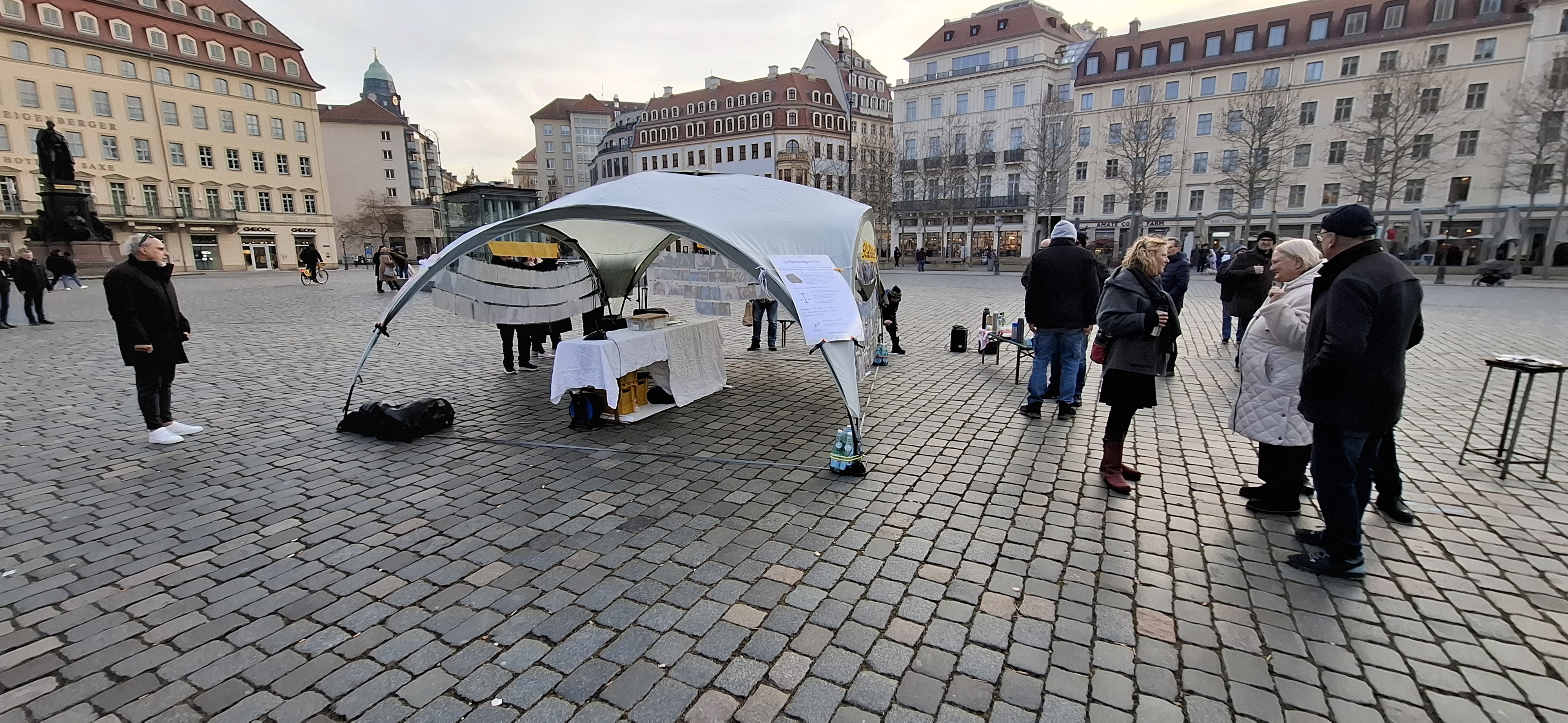 Wir laden alle herzlich ein, am 22. Februar auf dem Neumarkt in Dresden, zwischen Frauenkirche und Martin-Luther-Denkmal, an unserem ersten Versuch teilzunehmen!